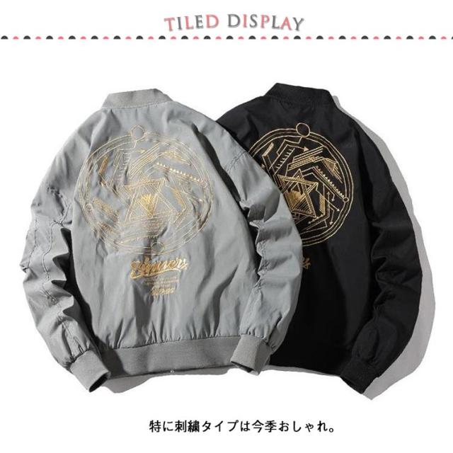 スカジャン アウター ミリタリージャケット ジャンパー メンズ 秋服 ミリタリー レトロ フライトジャケット 刺繍 ミリタリージャケット ライトアウター ノーカラージャケット ストリート ブルゾン 原宿系 M L XL 2XL
