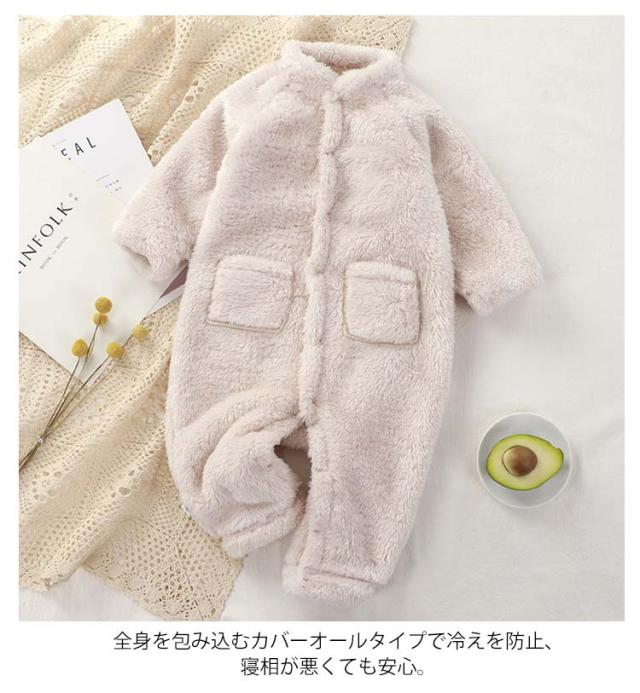 乳幼児 ロンパース 66 長袖 もこもこ パジャマ 暖かい 部屋着 前開き カバーオール 保温 長ズボン 裏起毛 子供服 可愛い 男の子 女の子 暖かい 赤ちゃん 新生児 ベビー服 出産祝い 防寒 寝間着 柔らかい 73 80 90 春 秋