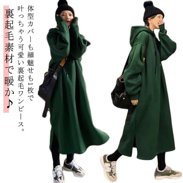 ワンピース マキシワンピ 裏起毛 裏起毛パーカーワンピース オバーサイズ 裏フリース 暖か パーカーワンピース 裏起毛 マキシワンピース 裏起毛 冬 秋 フード付き 裏ボア ルームウェア 部屋着 レディース 送料無料