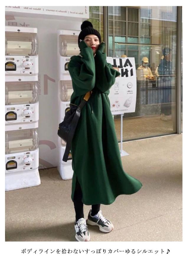 | 体型カバーも細魅せも1枚で叶っちゃう可愛い裏起毛ワンピース。 裏起毛素材で暖か♪ 膝下までカバーしてくれる長めのオーバーサイズ ボディラインを拾わないすっぽりカバーゆるシルエット♪ フード&ポッケ付仕様で機能性も◎ 女性らしさを引き立てる可愛い1枚。 | |