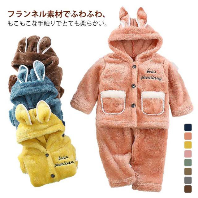 | フランネル素材でふわふわ、もこもこな手触りでとても柔らかい。 ウェストゴムも伸縮性に優れお腹を締め付けません。 保温性、快適性が優れて身体をやさしく包み込んで真っ冬には防寒対策として欠かさない冬のベビーパジャマです。 寝相が悪い子供達も朝までグッスリですよ。 上下セットで着ても、別々で着ても可愛く・オシャレに変身 ☆おでかけにはもちろん、ルームウェア としても。 | |