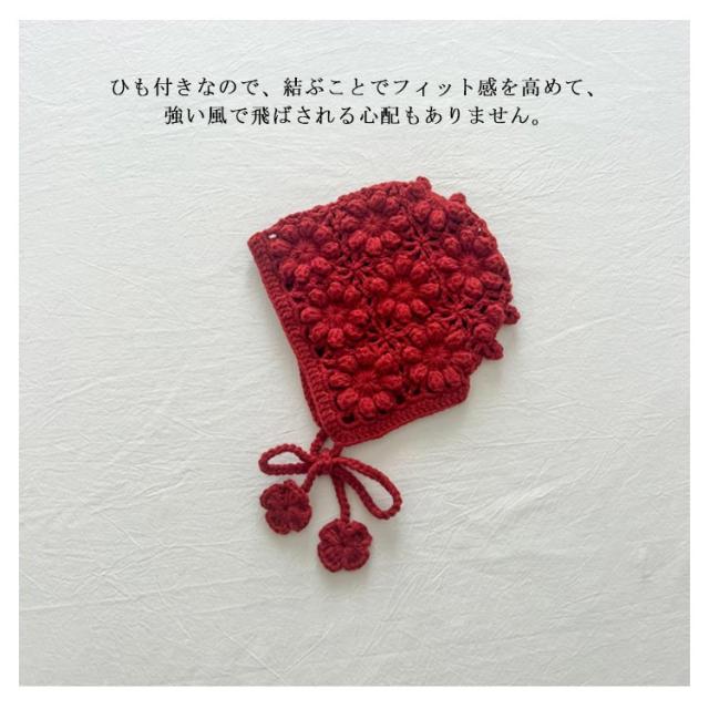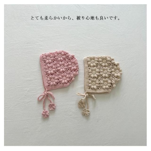 | 透かし編みがとってもオシャレなニットボンネット 通気性が高い素材なので、ソフトで肌触り感が良く、お子様の頭を優しく包みます。 とても柔らかいから、被り心地も良いです。 ひも付きなので、結ぶことでフィット感を高めて、強い風で飛ばされる心配もありません。 | |