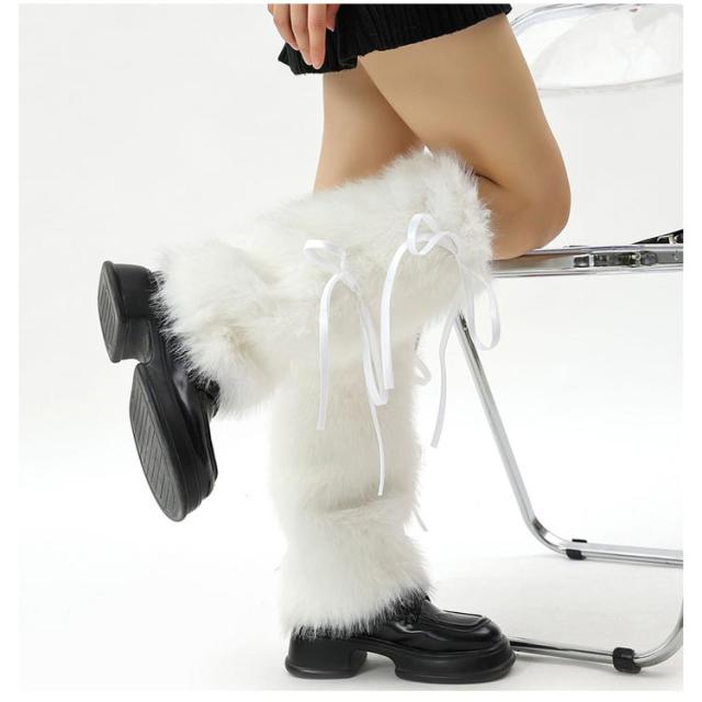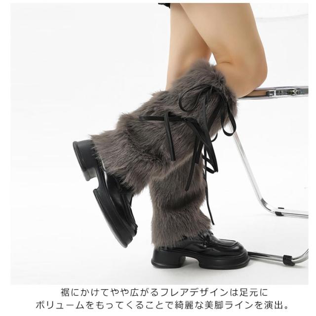 | サイドのリボンがガーリー感溢れる。足元からコーデを楽しんで♪ 足を温かく守れる秋冬にぴったりなフェイクファー素材 裾にかけてやや広がるフレアデザインは足元にボリュームをもってくることで綺麗な美脚ラインを演出。 履き口がゴム仕様になっており、しっかりとまってくれるのもポイント。 コーディネートに取り入れるルーズソックスとしても!寒い季節の防寒対策にはもちろん、冷房対策にも大活躍です! | |