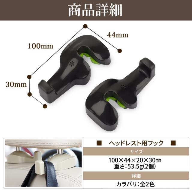 送料無料 車 フック 2個セット 荷物フック 運転席 助手席 カーフック ヘッドレスト 車内 収納 荷物掛け 引っ掛け 車用ハンガー シート コンビニ バッグ ゴミ袋 車用フック カー用品 車用品 便利グッズ