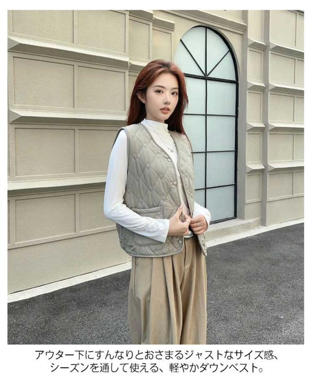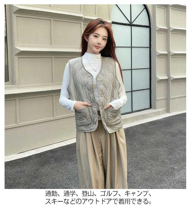 アウター Vネック 防風 レディース ダウンベスト ダウン ベスト ダウン風 無地 ダウンベスト ウルトラライト 暖かい 防寒 ライトダウン 無地 細身 エコダウンベスト インナーダウン 中綿 ベスト ジレ