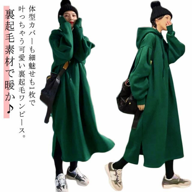 裏起毛 ワンピース 暖か 裏起毛パーカーワンピース あったか フード付き オバーサイズ 裏ボア 裏起毛 マキシワンピース マキシワンピ 冬 秋 裏フリース ルームウェア 裏起毛 部屋着 レディース 送料無料