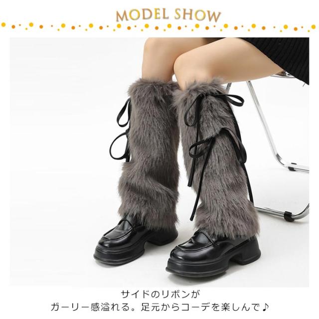 | サイドのリボンがガーリー感溢れる。足元からコーデを楽しんで♪ 足を温かく守れる秋冬にぴったりなフェイクファー素材 裾にかけてやや広がるフレアデザインは足元にボリュームをもってくることで綺麗な美脚ラインを演出。 履き口がゴム仕様になっており、しっかりとまってくれるのもポイント。 コーディネートに取り入れるルーズソックスとしても!寒い季節の防寒対策にはもちろん、冷房対策にも大活躍です! | |