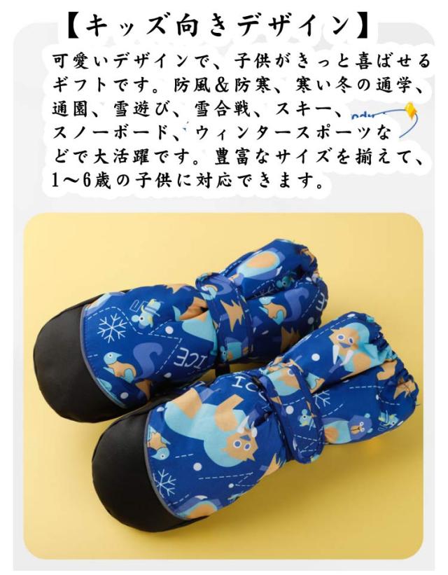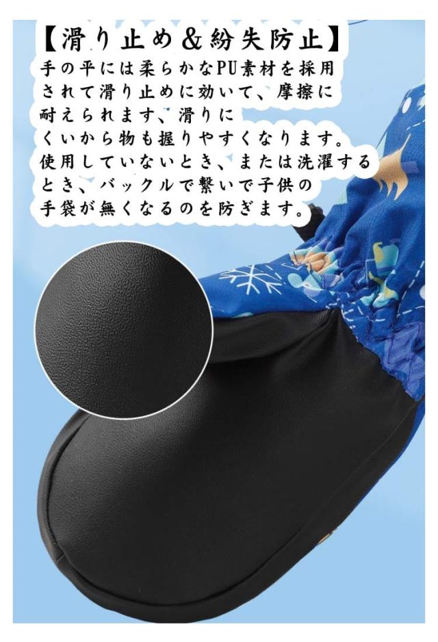 | 寒い季節に子供たちが楽しむスキーシーズンがやってきました!お子様の手をしっかり保護するために、自慢の子供用スキーグローブをご紹介いたします ? 【高品質】素材:高品質のポリエステルを採用されて、裏起毛で柔らかな肌触りが良く着け心地が素晴らしい。断熱性に優れ、非常に柔らかく、お子様の手を一日中暖かく保ちます。雪の日にも、冬を思う存分楽しむことができます。 ? 【防風保温】手袋の表面に撥水材質がきちんとされていて、雪や風を徹底ガードし、手の乾燥を保ちます。インナーは内側は保温性に優れた中綿が使用されています。熱を取り込み保温性に優れているのでとても快適です、雪の日に遊んでいても手はポカポカのままに保ちます。 ? 【着脱簡単】手の動きを考慮した立体縫製、ボードなども持ちやすいです。マジックテープ式調節ベルトが付き、子供でも簡単にサイズ調整ができます、着脱もしやすくなります。手首部分にゴムも付きで風や雪の侵入を防ぎます! ? 【滑り止め&紛失防止】手の平には柔らかなPU素材を採用されて滑り止めに効いて、摩擦に耐えられます、滑りにくいから物も握りやすくなります。使用していないとき、または洗濯するとき、バックルで繋いで子供の手袋が無くなるのを防ぎます。 ? 【キッズ向きデザイン】可愛いデザインで、子供がきっと喜ばせるギフトです。防風&防寒、寒い冬の通学、通園、雪遊び、雪合戦、スキー、スノーボード、ウィンタースポーツなどで大活躍です。豊富なサイズを揃えて、1〜6歳の子供に対応できます。 | |