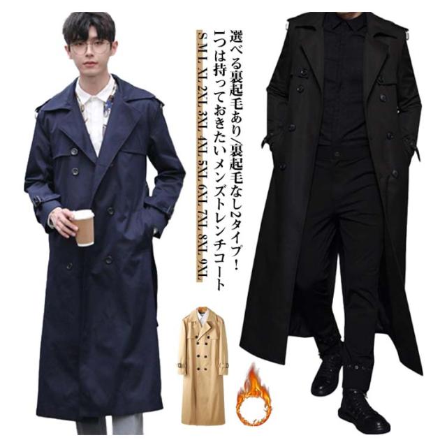 仕事 ロングコート ダブルコート 無地 裏起毛 トレンチコート 2タイプ 長袖 厚手 薄手 ビジネスコート メンズ ロング丈 紳士 アウター スプリングコート ゆったり 大きいサイズ カジュアル きれいめ 折り襟 通勤 トレンチコート 春服 冬服 秋服 春 秋 冬 ギフト