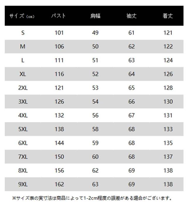 | サイズ | S M L XL 2XL 3XL 4XL 5XL 6XL 7XL 8XL 9XL |