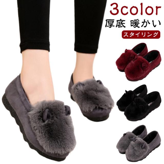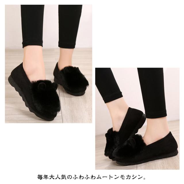 走れる ローファー パンプス モカシン ムートン 暖かい あったか もこもこ 防寒 レディース パンプス 疲れない 歩きやすい 通気性抜群 シューズ ふわふわ ムートン ぺたんこ フラット 疲れない 通学 通勤 おしゃれ シンプル