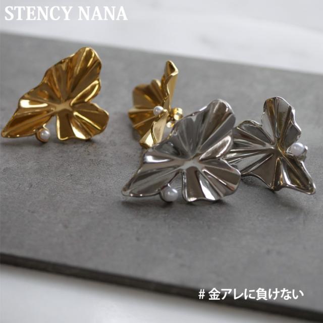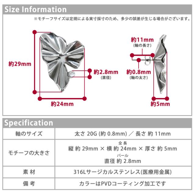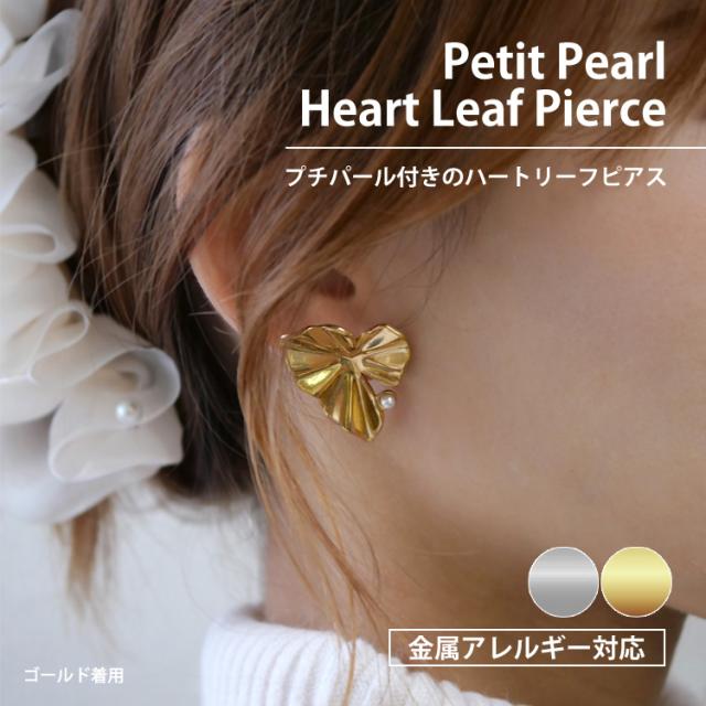 金属アレルギー対応 ステンレスピアス アンティーク プチパールハートリーフピアス セカンドピアス スタッドピアス 両耳用