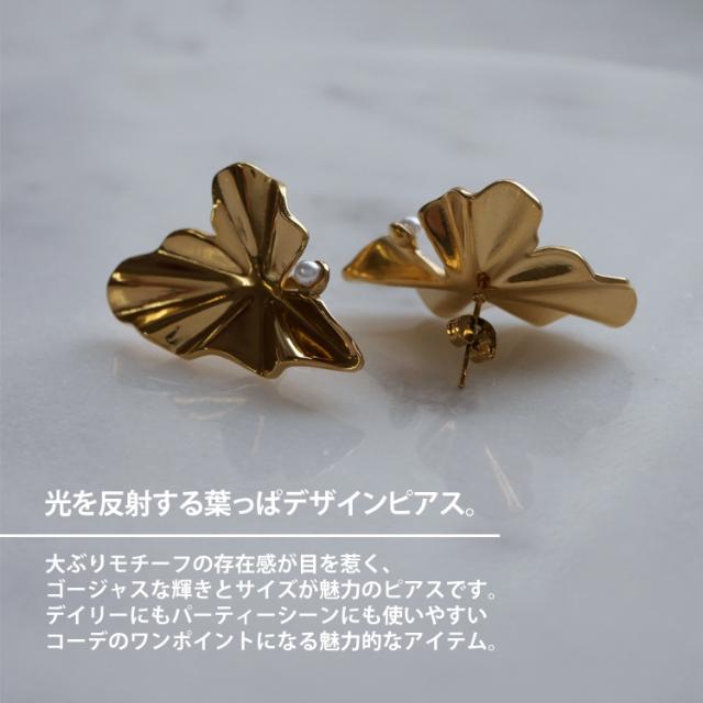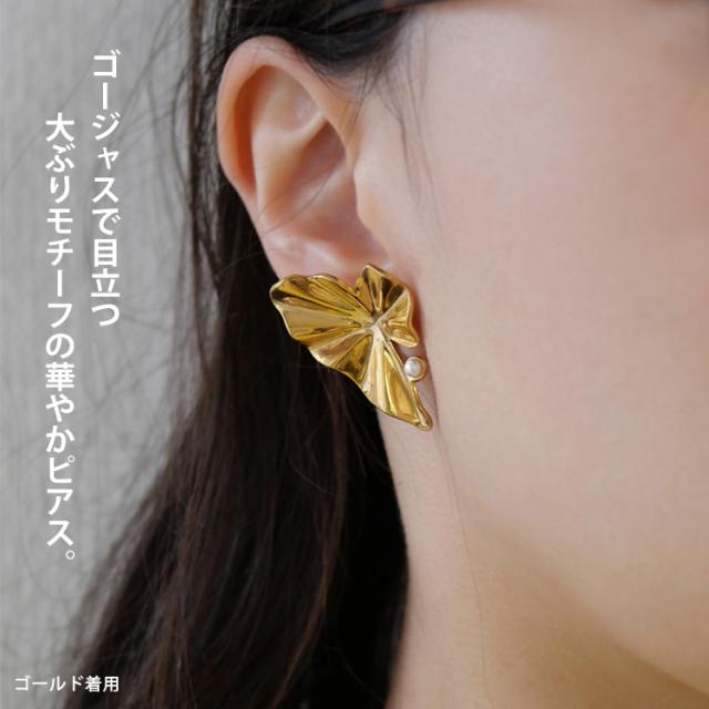 大ぶりモチーフの存在感が目を惹くゴージャスな輝きとサイズが魅力のピアスです。