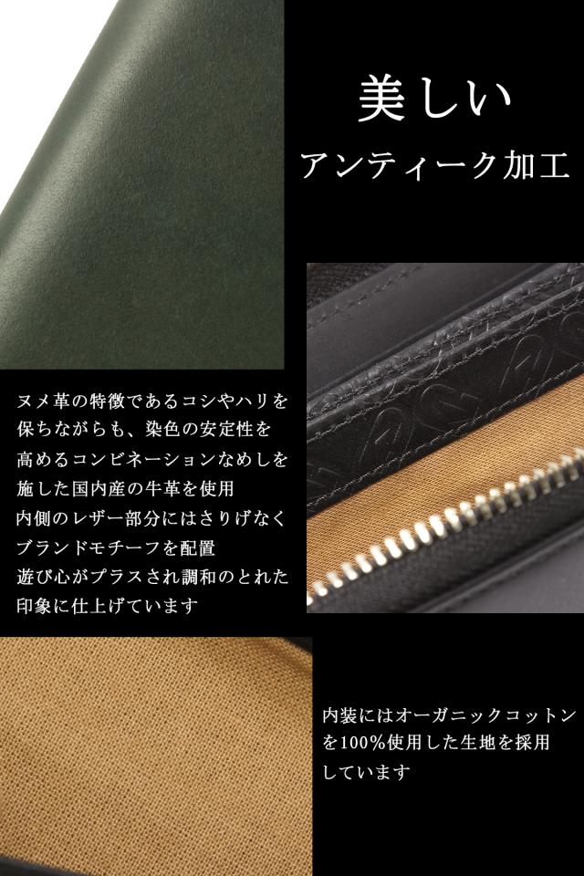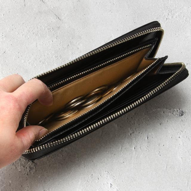 | ITEM POINT 美しいアンティーク加工のレザーと、ハンドステッチによる遊び心のバランスが取れたVEGAシリーズ。 原皮は国内産の牛で、革の生産地は兵庫県たつの市です。ヌメ革の特徴であるコシや張りを保ちながらも、染色の安定性を高める”コンビネーションなめし”を施した革です。染料の際には特別にブレンドされたオイルを配合することによって、自然なムラ感が革の内部から醸し出される、美しいアンティーク加工が特徴。アンティークに仕上げた革はベーシックかつクラシックになりがちですが、両サイドに2色のハンドステッチを入れることで、遊び心がプラスされ調和の取れた印象に仕上げています。 ファスナーを開いた内側のレザー部分にはさりげなくブランドモチーフを型押ししています。また内装にはオーガニックコットンを100%使用した生地を使用。ファスナーの持ち手が革であることで、より上品な印象となっております。 MORE DEATAIL こちらのお財布はラウンドファスナーのため端から端までしっかりと開くことで視認性が高い点が特徴です。さらに蛇腹仕様になっているため、大容量なだけではなく中身が探しやすい点が嬉しいポイントです。お札入れ、ジップ付きの小銭入れ、そしてカードポケットが14箇所備わっています。カードケースやコインケースなどバラバラではなく、1つのお財布でしっかり収納力があるお財布を探されている方にぴったりです。 お誕生日のギフトやクリスマスなどのプレゼント、その他のお礼などの贈り物にもオススメです。 |