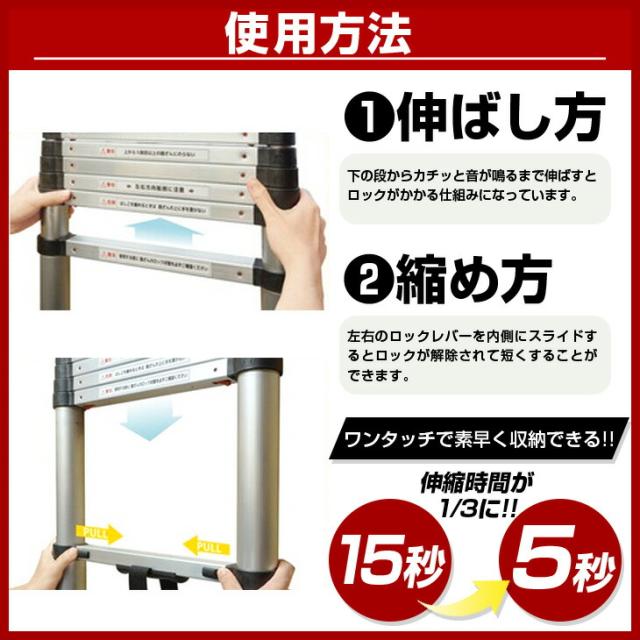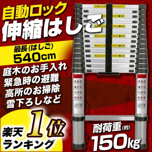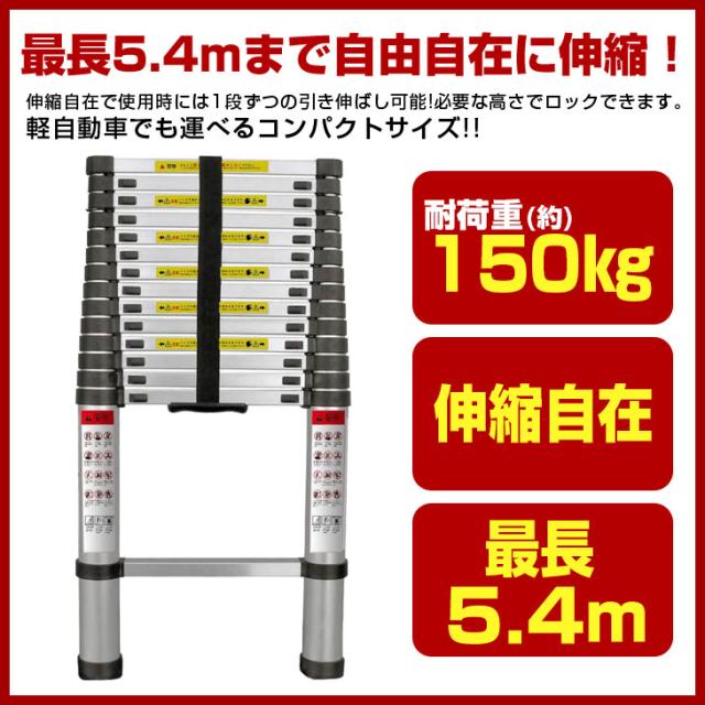 【安心の1年間保証】伸縮アルミはしご5.4m