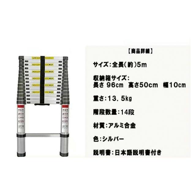 はしご 伸縮 折りたたみ はしご 5.4m 14段 耐荷重150kg 伸縮はしご 梯子 伸縮 アルミ製 ハシゴ 安全ロック 軽量 伸縮梯子 屋根 スライド式 折り畳み