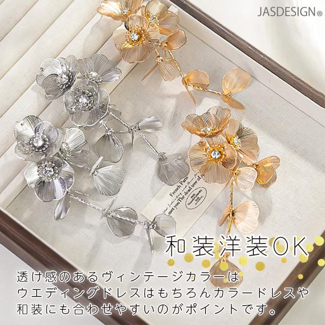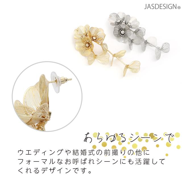 ウエディングピアス ブライダルピアス ブライダルアクセサリー リーフ フラワー 花びら 揺れる 結婚式 二次会 和装 演奏会 卒業式 発表会 JM-362