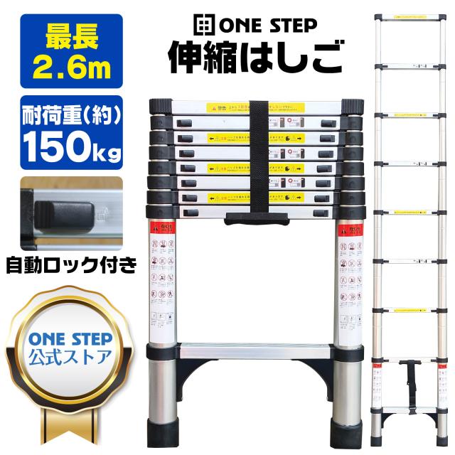 【安心の1年間保証】伸縮アルミはしご2.6m