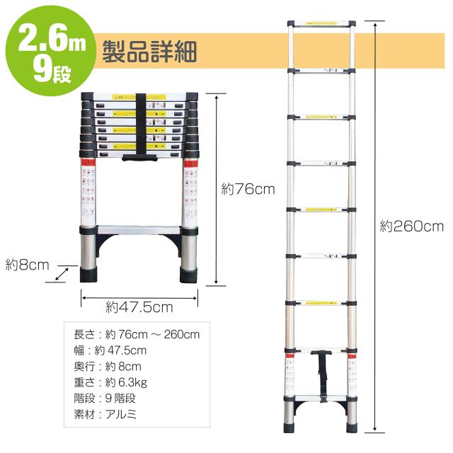 最長2.6m・9段・耐荷重150kg