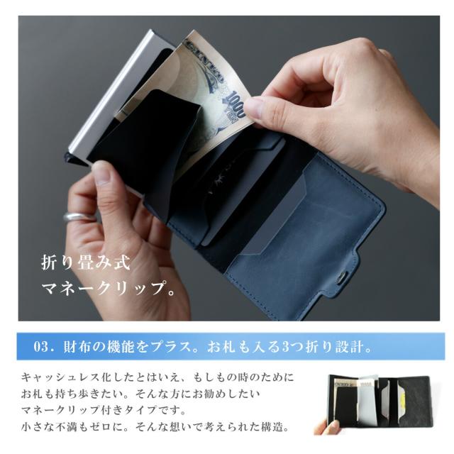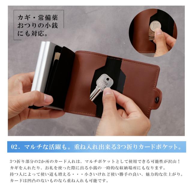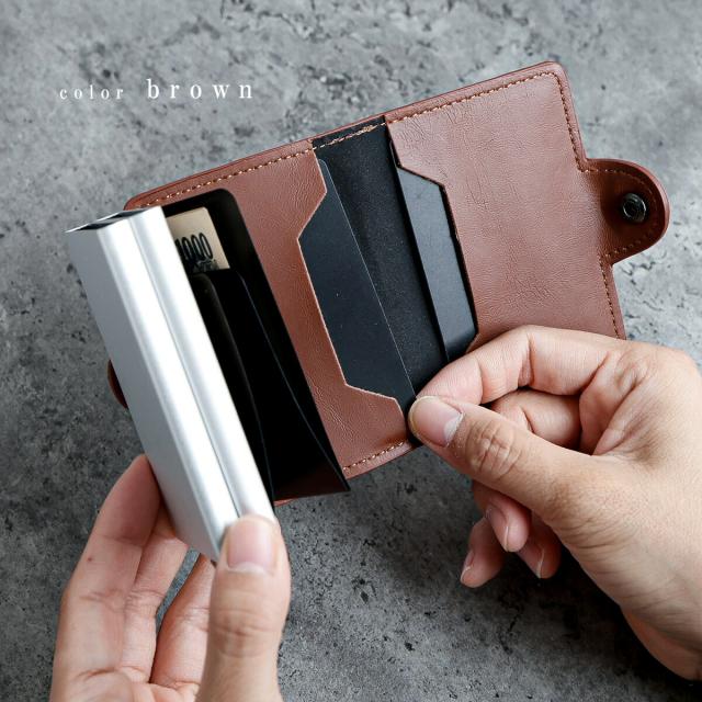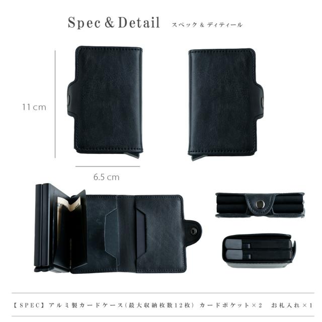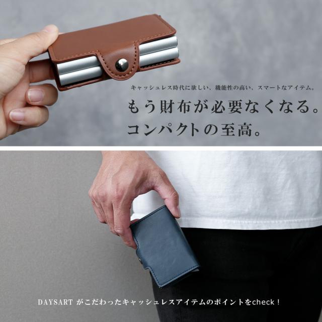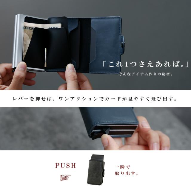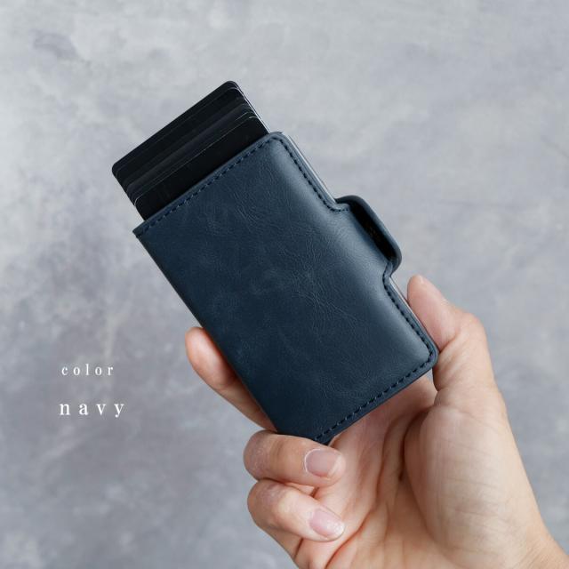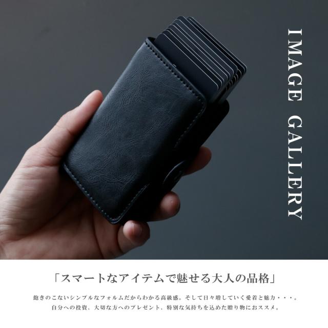 便利さと安心感を兼ね備えた、洗練されたデザインのスライド式カードケース。ボタンひとつでカードがスムーズに飛び出す仕組みで、簡単にカードを取り出せます。ダブル構造で大容量を実現し、複数のカードを一度に収納できるので、これ一つで様々なシーンに対応可能です。