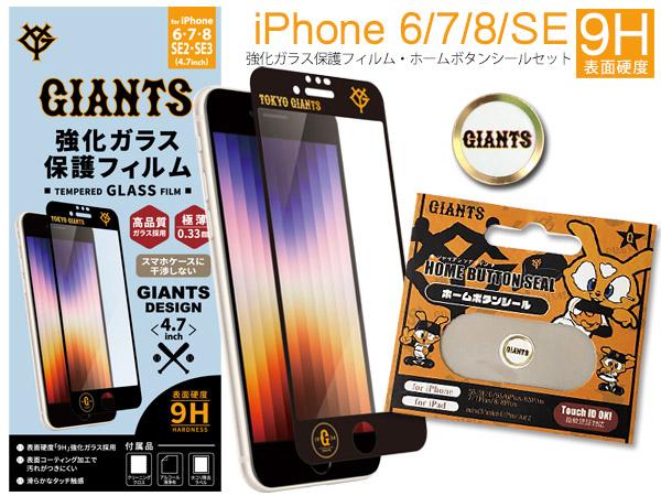 ジャイアンツ公認デザイン スマホ 保護フィルム ホームボタンシール Bセット GIANTSロゴ iPhone6/7/8/SE 極薄 高品質 メール便 送料無料