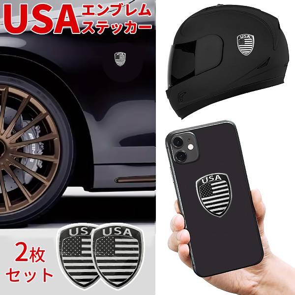 2枚セット USA カー ステッカー アメリカ合衆国 黒 ブラック 国旗 フラッグ バイク 車 エンブレム デカール シール デコレーション カスタム ヘルメット ワンポイント