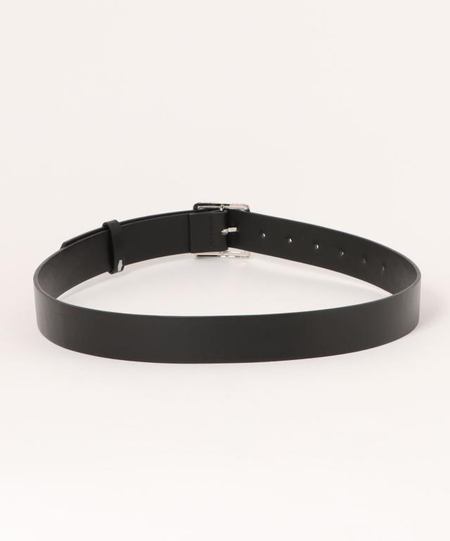 光沢感のあるシルバーバックルにマットPUレザーを組み合わせたスタイリッシュなデザインベルト。
