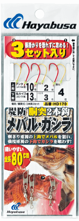 ハヤブサ 堤防メバル・ガシラ 胴突2本鈎 3セット HD170 #鈎8号/11号 ハリス1号/2号 / 仕掛け つり具 メール便可