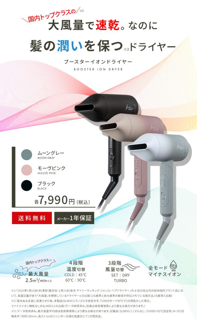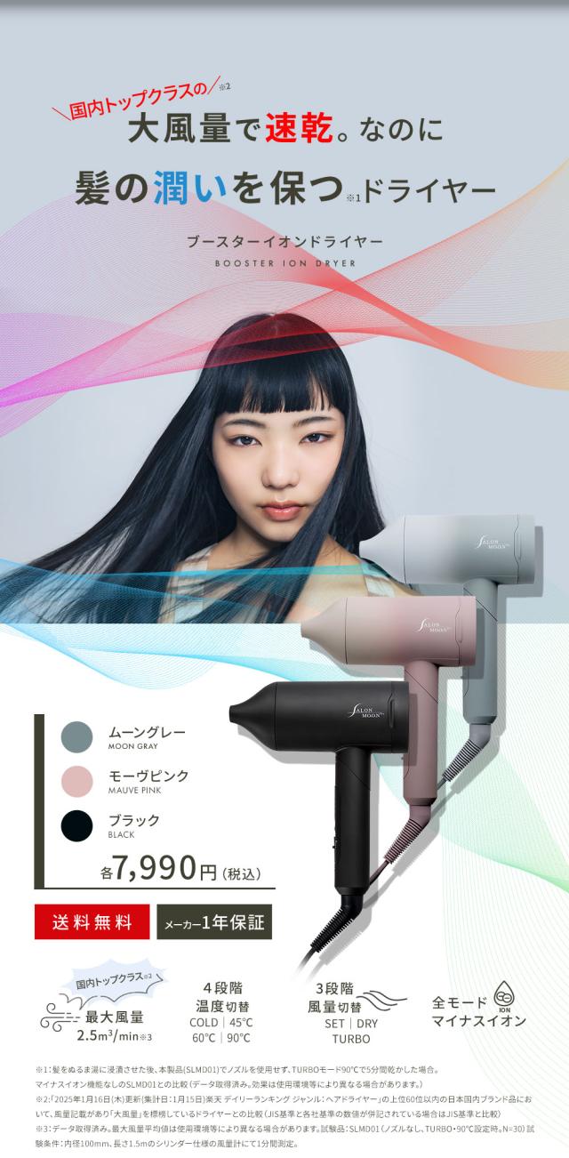 ヘアドライヤー 速乾 大風量 マイナスイオン ブースターイオン サロンムーン SALONMOON