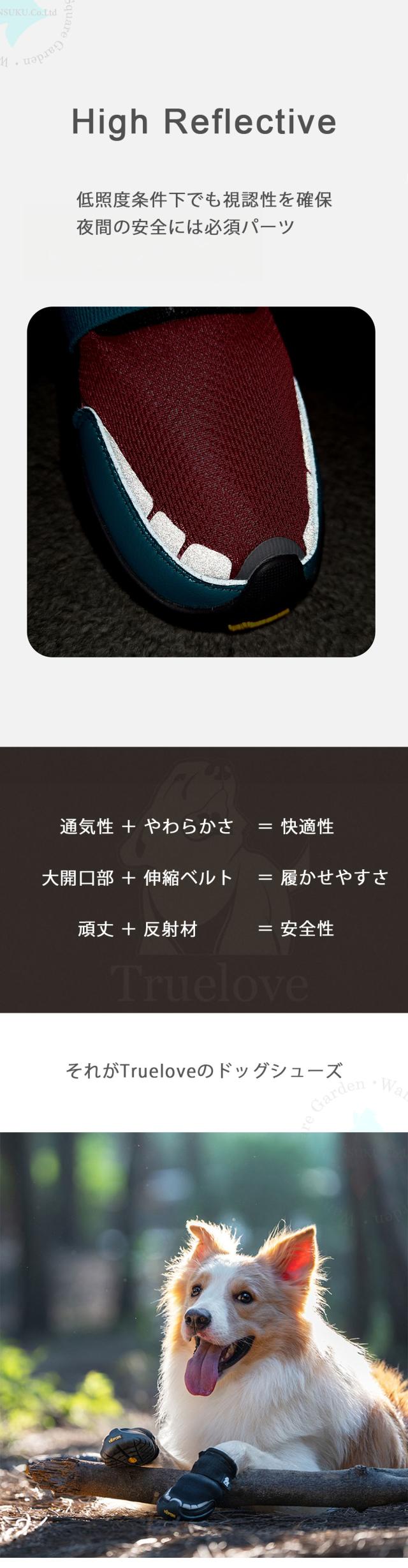 犬 靴 犬用 ドッグシューズ Vibramソール採用 軽量 柔らかい メッシュ素材 通気性抜群 滑りにくい靴 着脱簡単 開口部大きく開く 小型犬 中型犬 大型犬対応 お散歩 アウトドア 保護ブーツ 耐久性 Truelove ヴィブラムソール ドッグシューズ 【4個入】