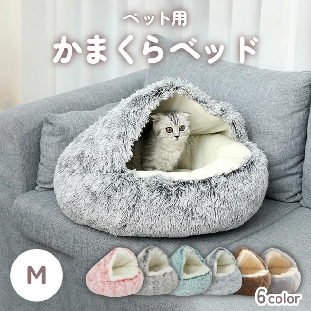 ペット用 かまくらベッド 犬 猫 ペット ベッド ドーム ハウス クッション 洗える 丸洗い ふわふわ ふわもこ ふかふか 寝袋 円形 丸型 ラウンド 通年 オールシーズン 保温 防寒 ロングファー M
