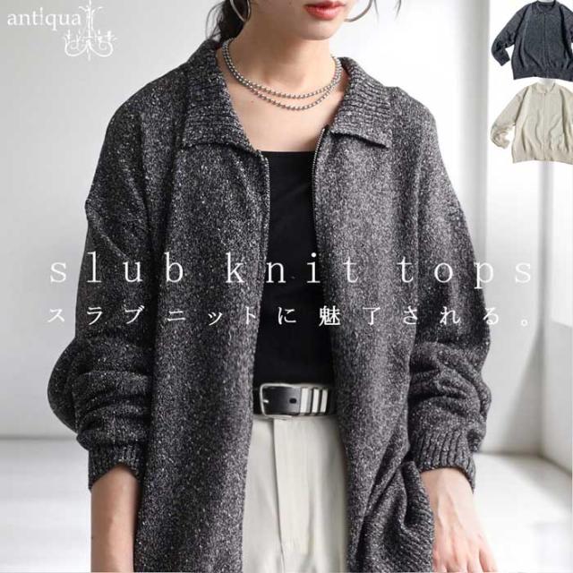 【検索ワード】スラブニットZIPトップス ニット レディース トップス 長袖 スラブニット ダブルジップ 前開き ジップアップ ゆったり シンプル きれいめ 上品 高級感 ふんわり ふわふわ 立体感 もこもこ 体型カバー 細見え 華奢見え 着痩せ 大きめ 大きいサイズ アウター 軽アウター 羽織り 伸縮性 ブラック 黒 アイボリー 白 antiqua アンティカ 大人 おしゃれ 10代 20代 30代 40代 50代 60代 春 夏 お洒落 カジュアル かわいい かっこいい あんてぃか