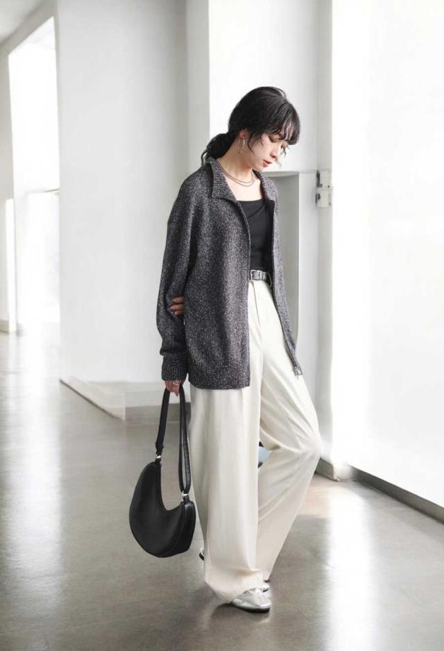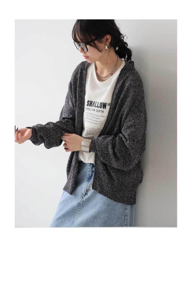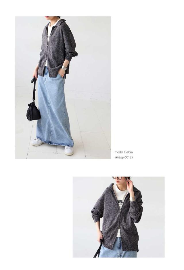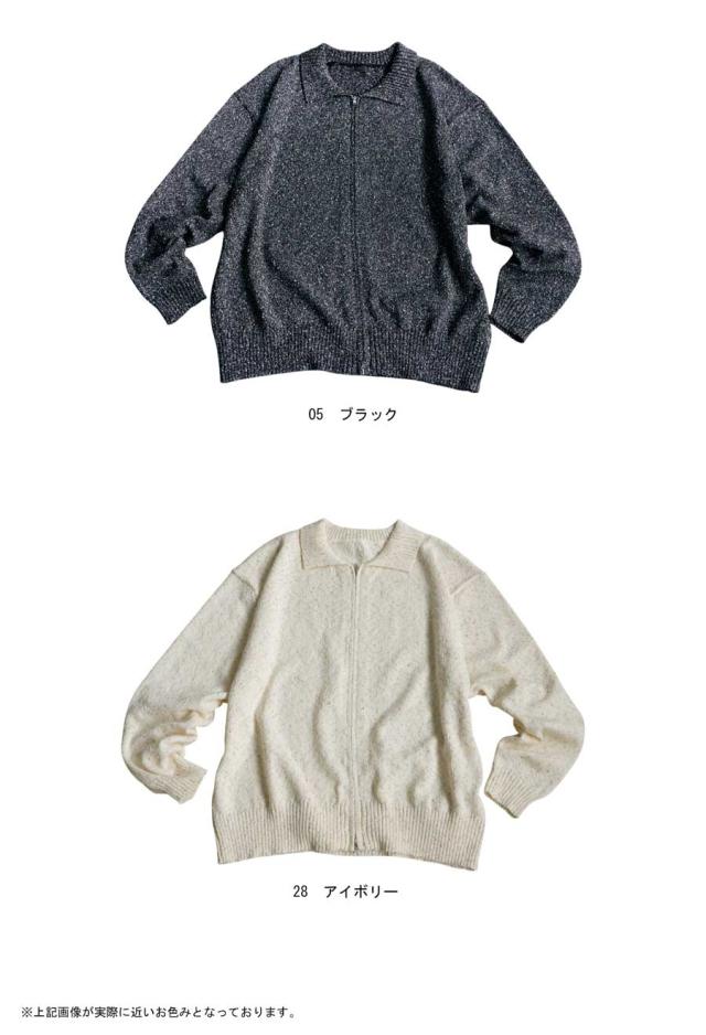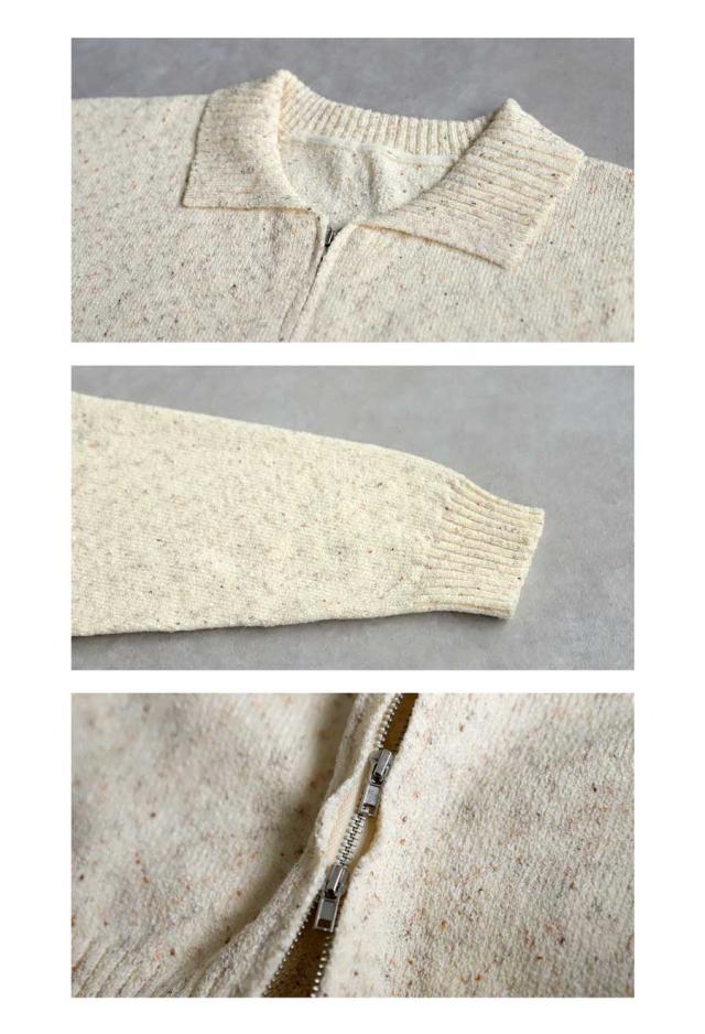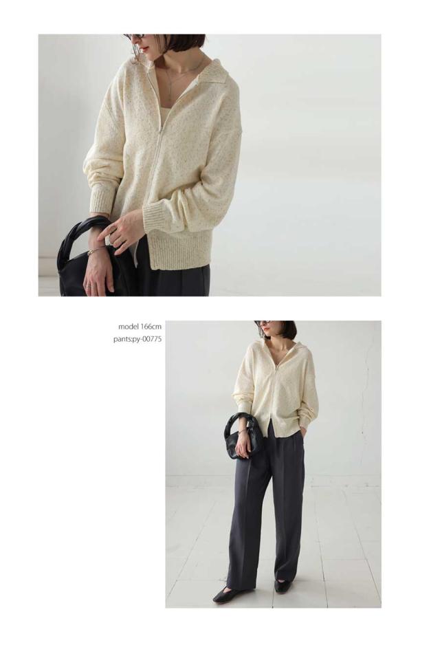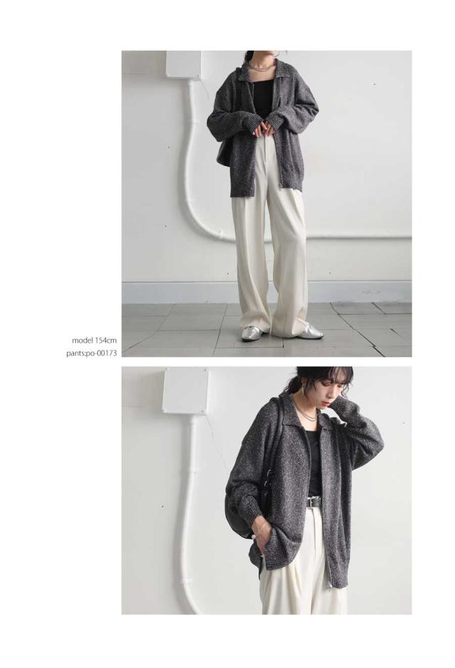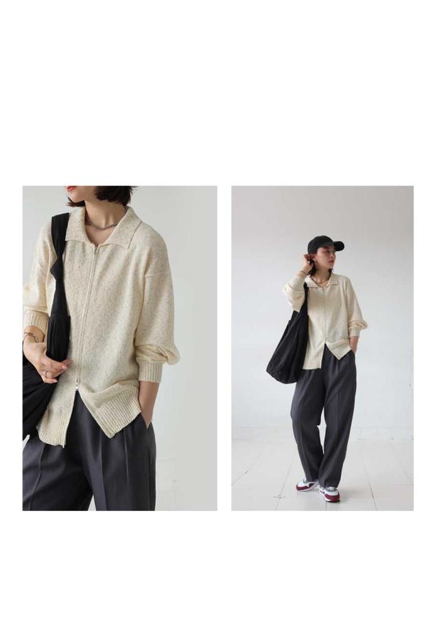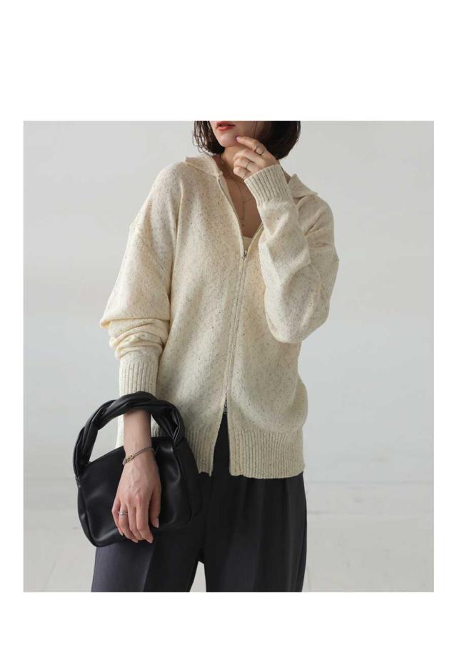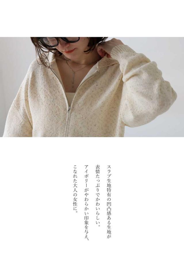 yz-00103 トップス 長袖 スラブニット ダブルジップ 前開き ジップアップ ゆったり シンプル きれいめ 上品 高級感 ふんわり ふわふわ 立体感 もこもこ 体型カバー 細見え 華奢見え