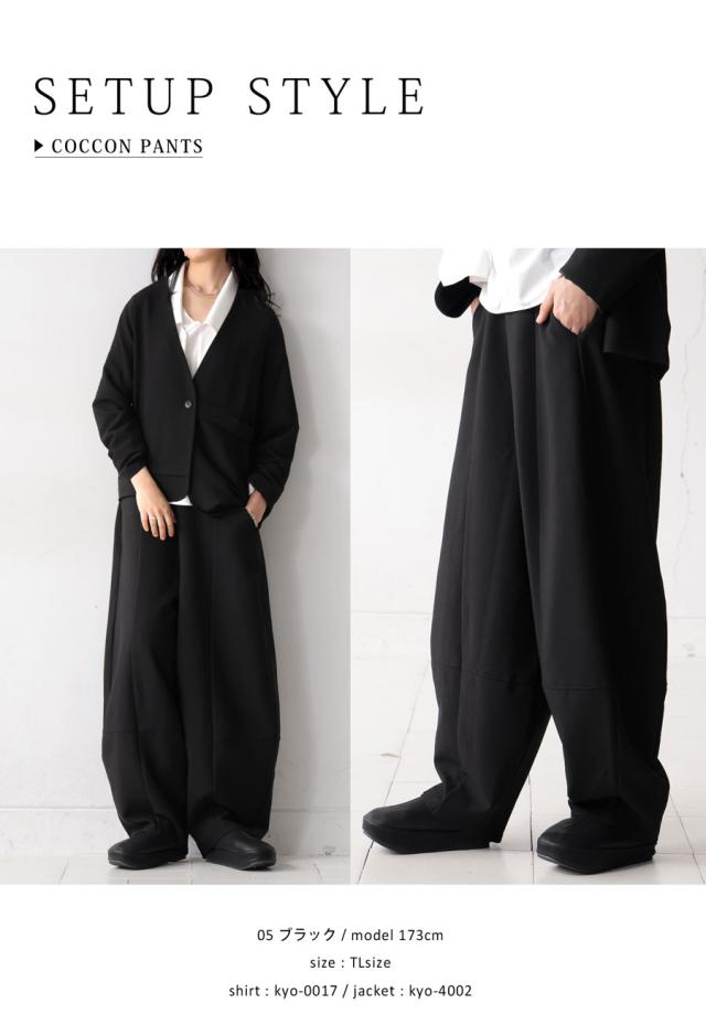 kyo-4004 長ズボン セットアップ 無地 コクーンシルエット コクーン ウエストゴム 前フラット 後ろゴム ポケット付き タック ゆったり シンプル きれいめ 上品 クラシカル 高級感