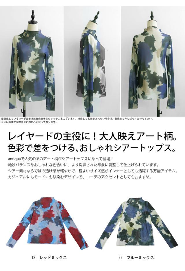 【検索ワード】アートシアートップス トップス レディース 長袖 透け感 シアー シアー素材 水彩柄 アート柄 柄 メロウ タートルネック ハイネック メロウ 高級感 総柄 モードスタイル 大人カジュアル 個性的 伸縮 ストレッチ 抜け感 デザイントップス シースルー レトロ ニュアンス柄 重ね着 レイヤード カットソー 着回し トレンド レッドミックス レッド 赤 ブルーミックス ブルー 青 マルチ カラフル グラデーション antiqua アンティカ 大人 おしゃれ 10代 20代 30代 40代 50代 60代 春 夏 お洒落 カジュアル かわいい かっこいい あんてぃか