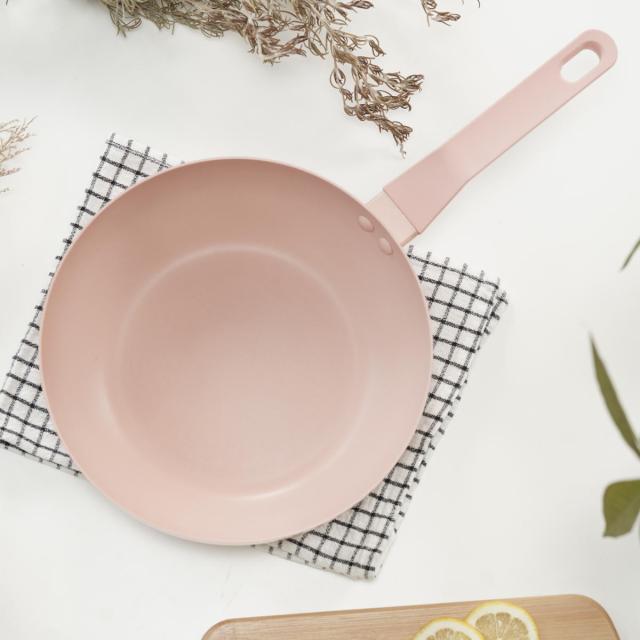 外面だけでなく、内面にもペールピンクを採用したフライパンです。お料理の焼き具合やスープの濃さを確認しやすいカラーです。
