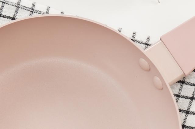 外面だけでなく、内面にもペールピンクを採用したフライパンです。お料理の焼き具合やスープの濃さを確認しやすいカラーです。