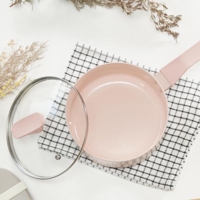 片手鍋 18cm IH対応 ROSA ふっ素加工 ( ガス火対応 オール熱源対応 なべ お鍋 片手なべ フッ素加工 軽い ガラス蓋付き 18センチ フッ素コーティング アルミ製 軽量 ガラス蓋 調理器具 キッチン用品 ピンク 可愛い おしゃれ ローサ )