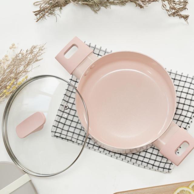 両手鍋 20cm IH対応 ROSA ふっ素加工 ( ガス火対応 オール熱源対応 なべ お鍋 両手なべ フッ素加工 軽い ガラス蓋付き 20センチ フッ素コーティング アルミ製 軽量 ガラス蓋 調理器具 キッチン用品 ピンク 可愛い おしゃれ ローサ )