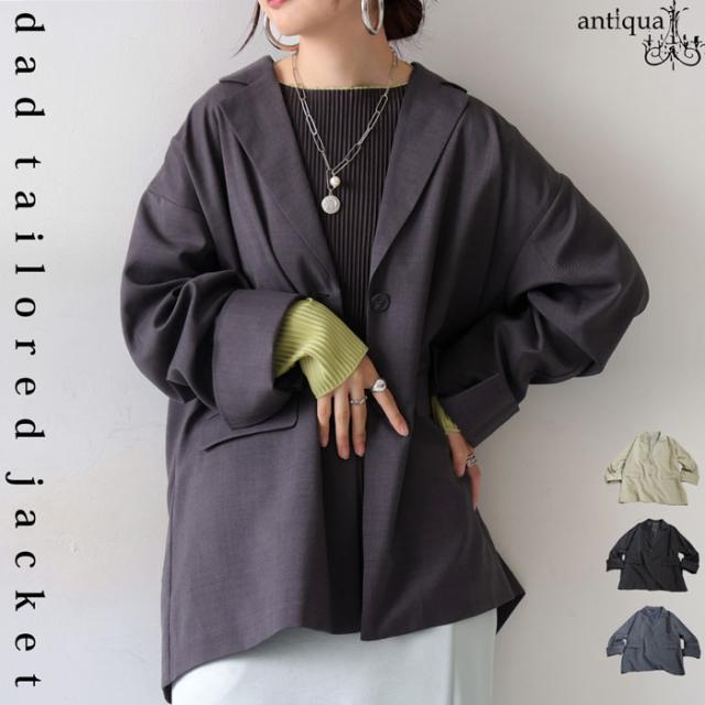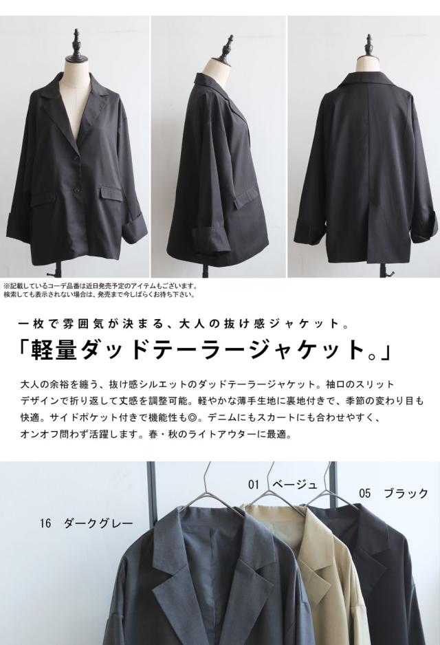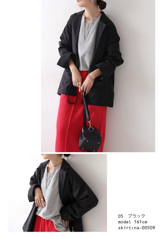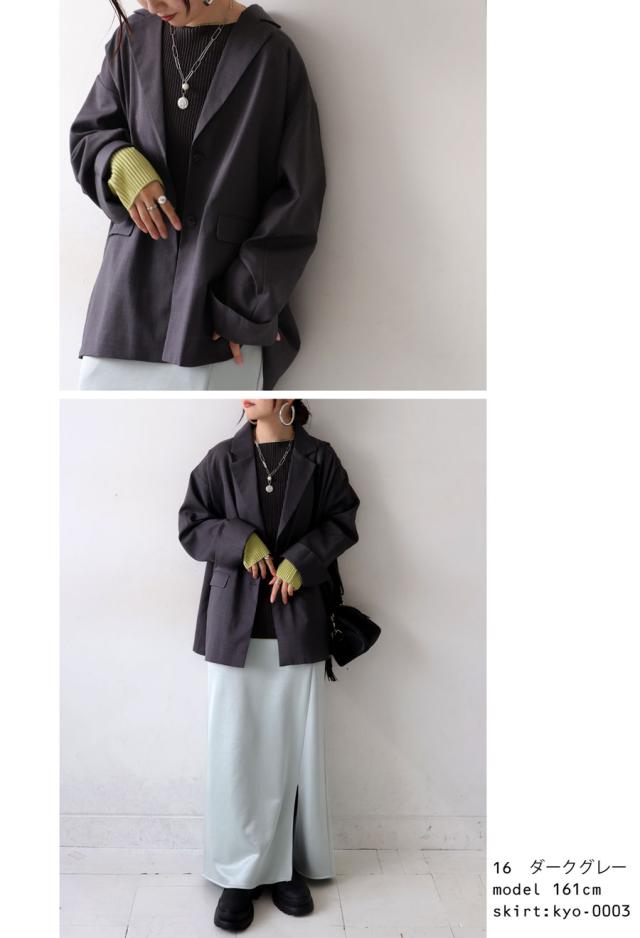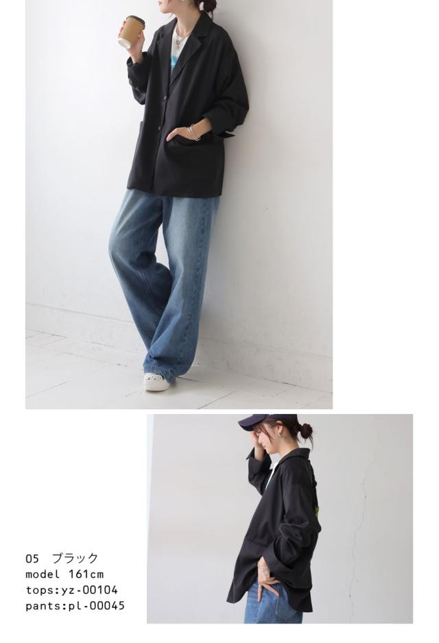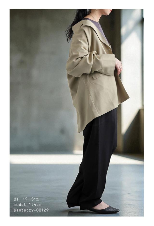 ep-00200 テーラードジャケット アウター 羽織り 長袖 裏地付き 軽量 スリット袖 ポケット付き リラックスシルエット 上品 体型カバー シンプル ナチュラル カジュアル きれいめ 上品