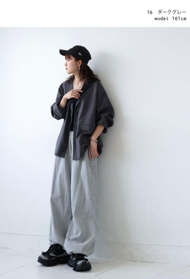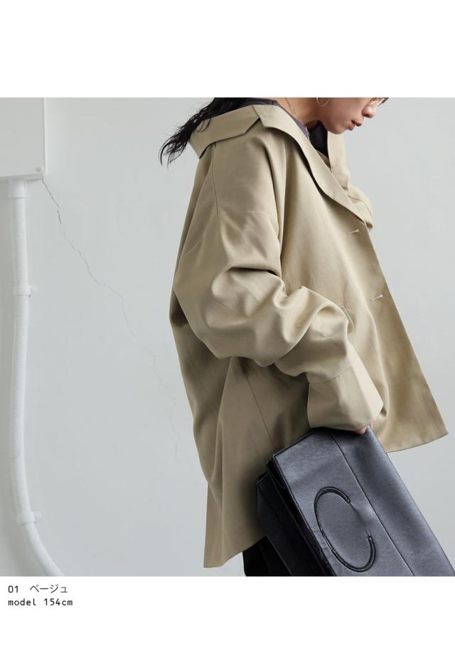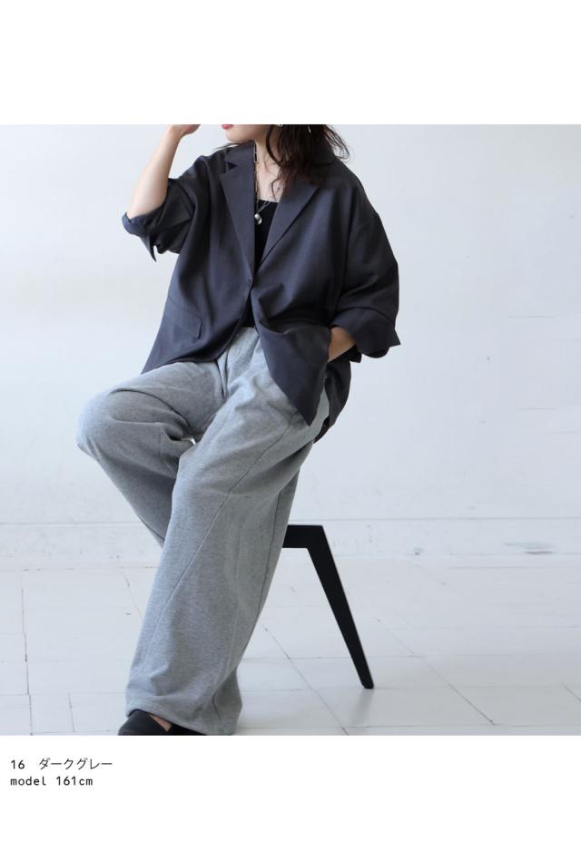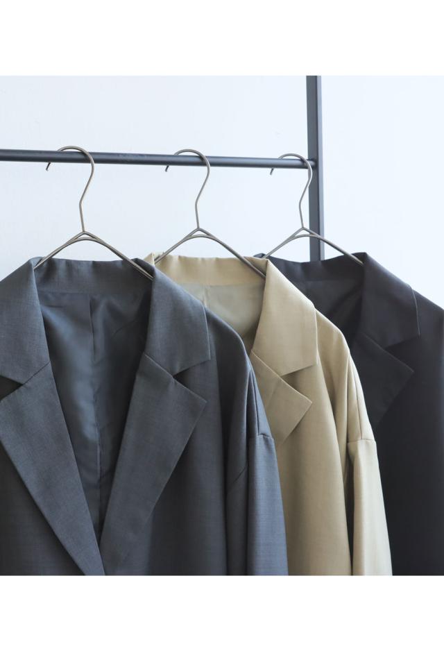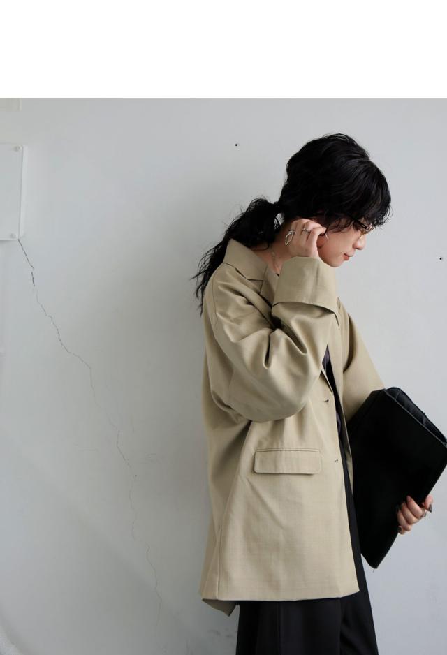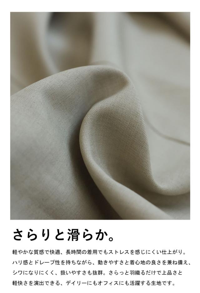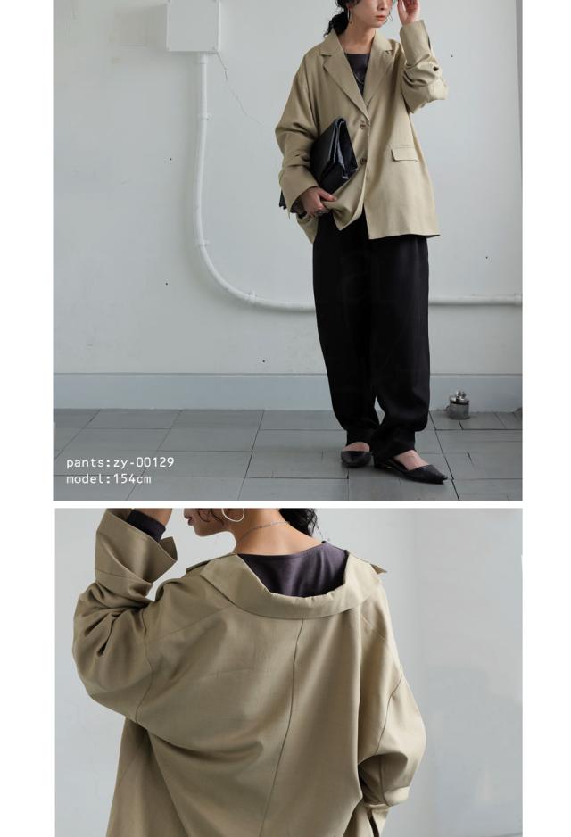 テーラードのネックラインと落ち感のあるゆったりシルエットが、女性らしい柔らかさを演出します。