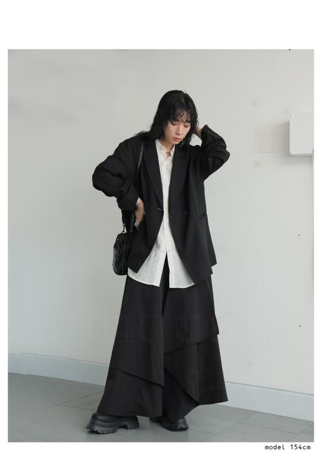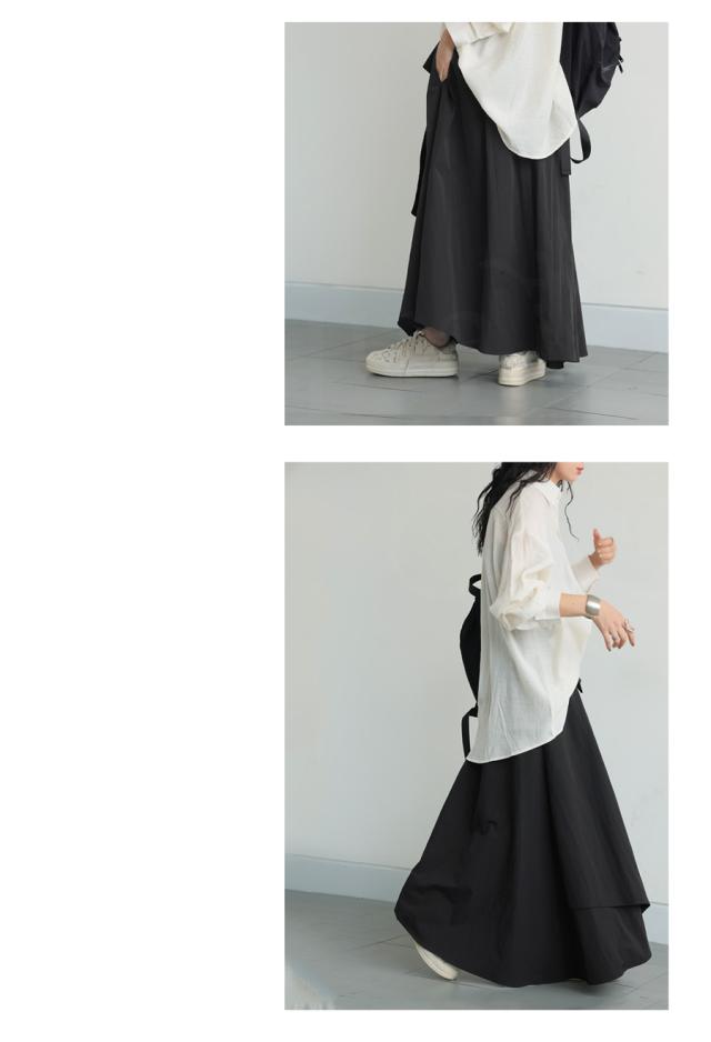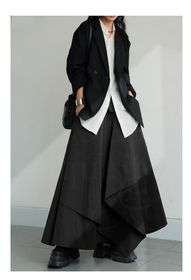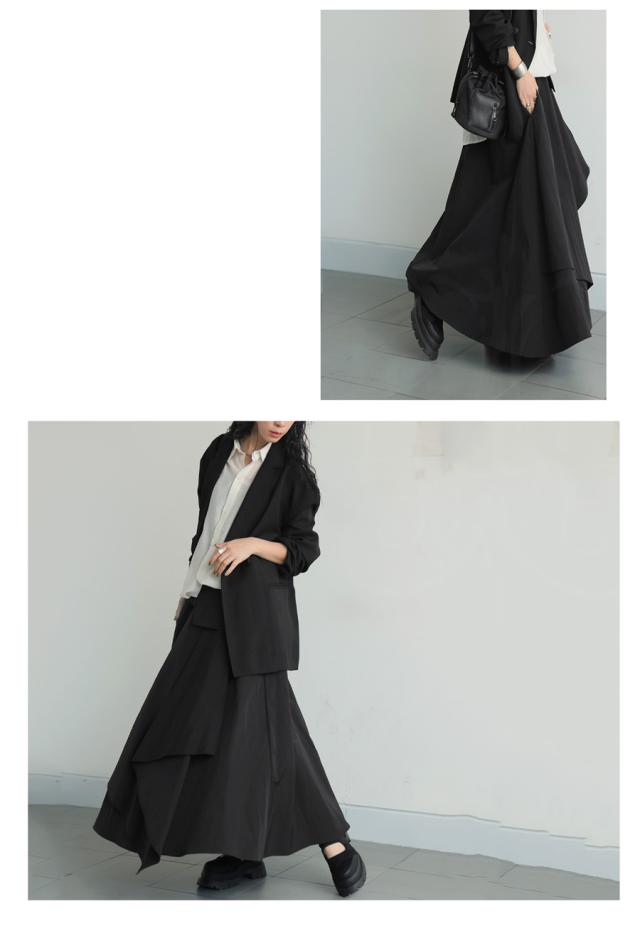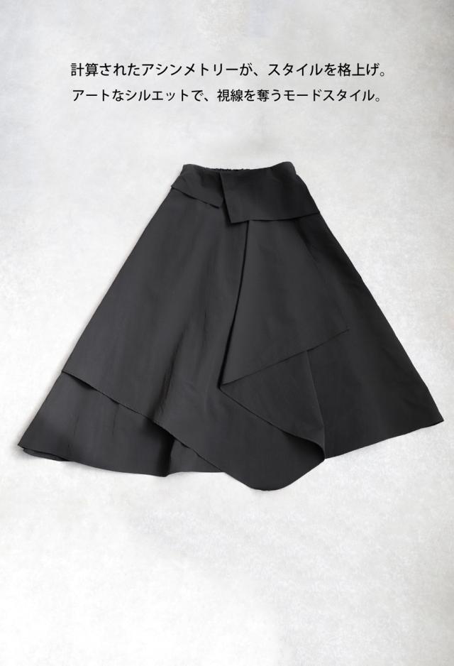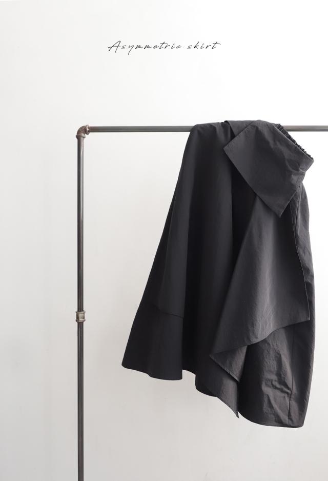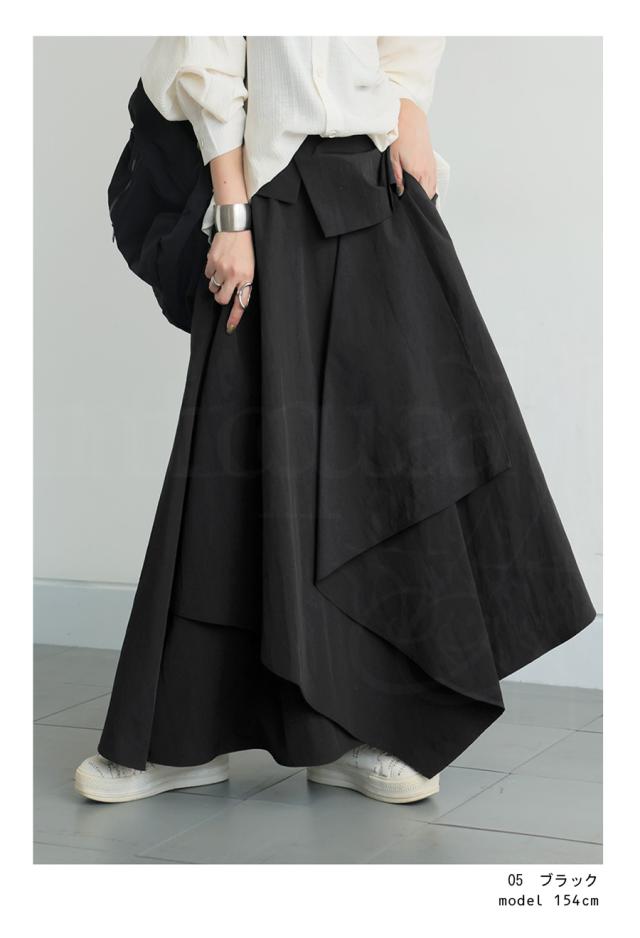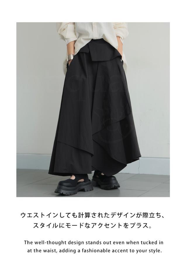 py-00813 ロング 無地 変形 個性派 アシメ アシンメトリー ゆったり ロング ロングスカート シンプル きれいめ 高級感 モード ブラックコーデ オールブラック フレア ボリューム