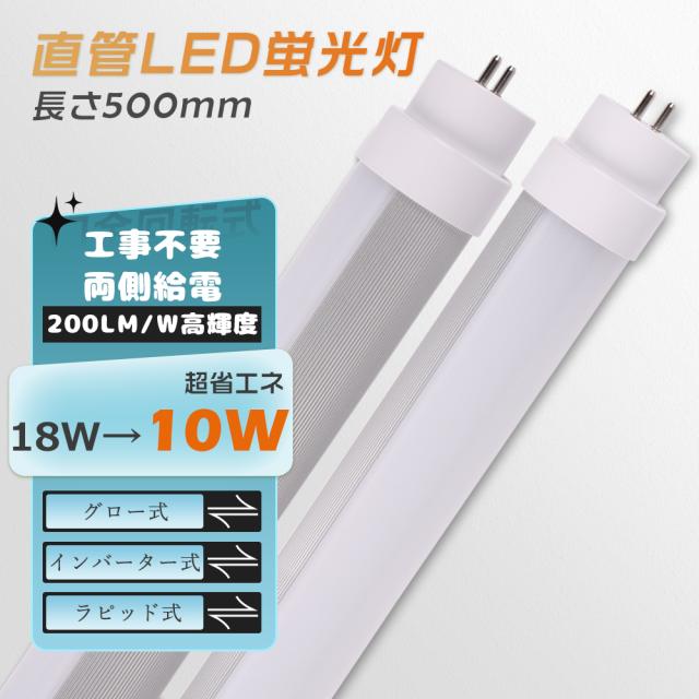 ≪二年保証≫ 直管蛍光灯 LED 直管LEDランプ 蛍光灯 18形 LED蛍光灯 直管 18W形 500MM 工事不要 LED蛍光灯 18形 LED蛍光灯 50CM 昼光色 直管型LED蛍光灯 18形 グロー式 インバーター式 ラビット式工事不要 便利に安装 FHF18 FLR18S FL18 LED蛍光管18型 10W 2000lm 節電 家庭用
