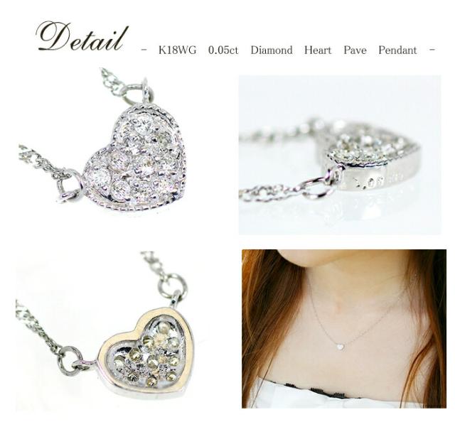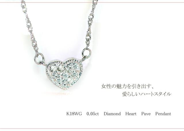 ペンダント ネックレス ダイヤモンド 0.05ct 18金 ホワイトゴールド K18 WG ハート パヴェ パべ レディース アクセサリー ジュエリー ギフト oe5990 ダイヤ