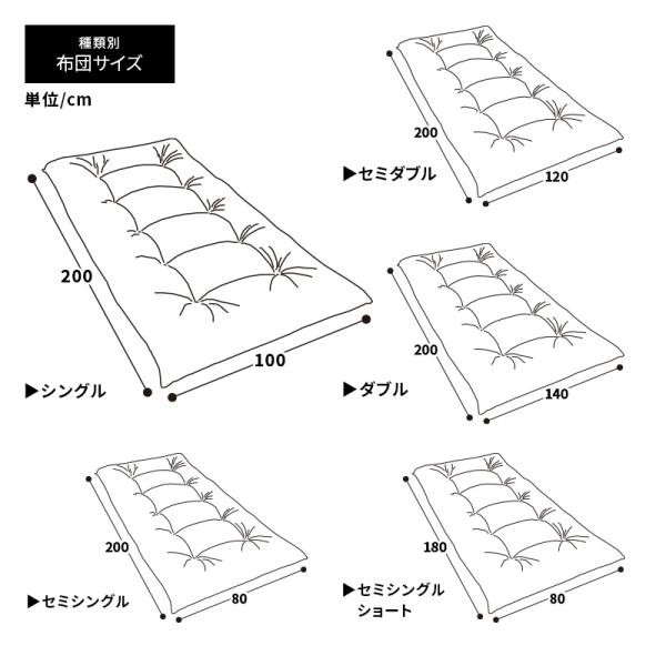 六つ折り3層国産敷布団 セミシングル 3層敷布団 マットレス 軽量 コンパクト 日本製