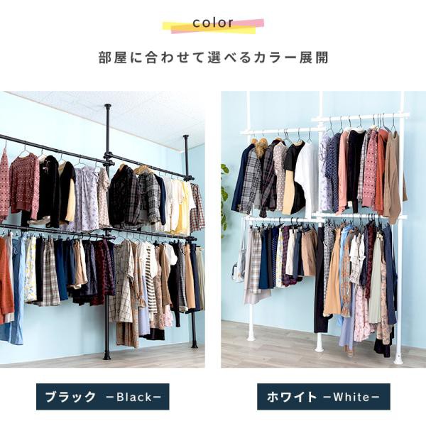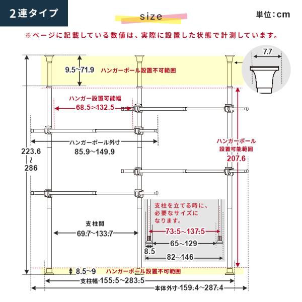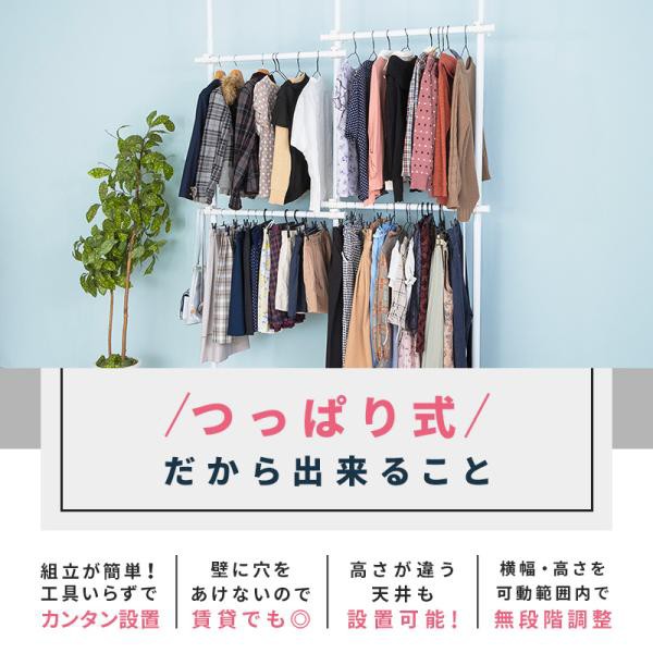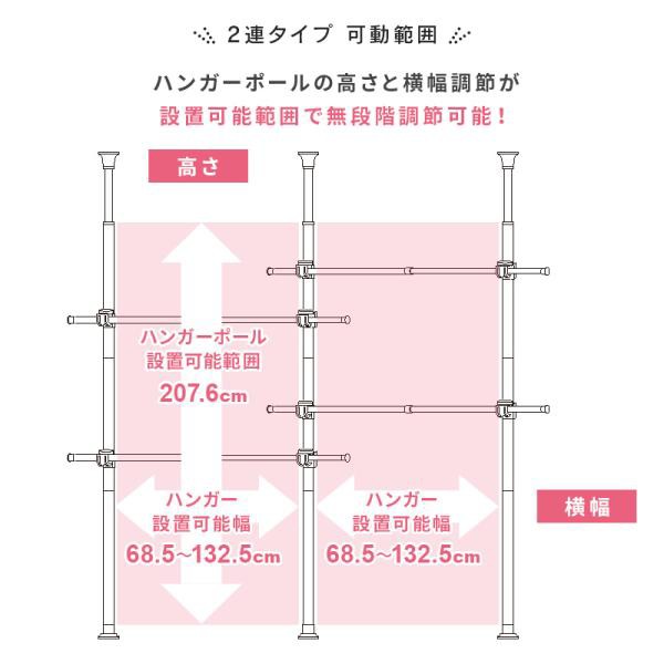 2連突っ張りハンガーラック 2連 突っ張りポールハンガー パイプハンガー ハンガーラック 支柱高さ伸縮 ヨコ幅伸縮