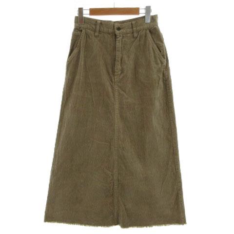 【中古】ユニバーサルオーバーオール UNIVERSAL OVERALL スカート 台形 裾フリンジ ロング丈 コーデュロイ 茶系 M