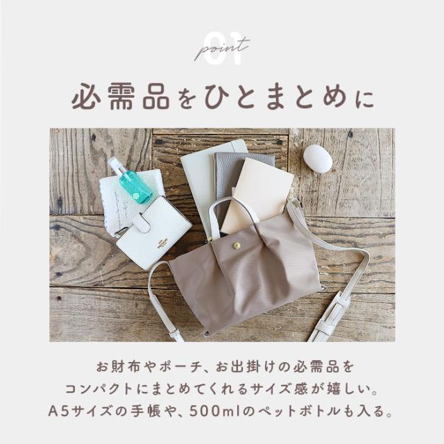 | 商品説明 | 【ストレスなくお出かけできる相棒】 ・負荷を減らして快適◎「Legato Largo 肩楽撥水ナイロン ミニショルダー」。 【肩への負担を分散◎肩楽シリーズ】 ・ショルダーに、取り外し可能なパッドを装備。毎日使うものだからこそ、肩に優しいつくりに。 【異素材ミックスでおしゃれ度アップ】 ・上品な光沢のあるナイロンに、手触り柔らかな合皮が素敵にマッチ♪コーデのワンポイントに。 【お好みに合わせてスタイルチェンジ】 ・ショルダーの長さを調節して、肩掛けや斜め掛け。短いハンドルを使って手持ちもOK☆ 【メインもサブ使いもできて万能】 ・手軽に持ち出せるサイズ感。これ1つで身軽にお出かけはもちろん、旅行などのサブバッグにも。 【あおりポケット付きの3層構造】 ・メインルームに加え、両側にあおりポケットを配置。荷物を整頓しやすく、迷子知らず◎ 【開閉スムーズ。安心の天ファスナー】 ・メインルームはガバっと開いて出し入れ簡単。ファスナーを閉じれば、プライバシーも確保。 【マストアイテムをひとまとめ】 ・程よくマチを設け、長財布や500mlペットボトルをIN。小さくても必要な物はしっかりと。 【安定した状態で持ち運び可能】 ・ソフトな底板を内蔵。自立するので出し入れしやすく、持ち運び時も安定感をキープ。 【ちょっとの雨なら大丈夫】 ・バッグには汚れや水滴を弾きやすい、撥水加工済み。お手入れも拭き取るだけ。 (※)完全防水ではありません。 【飽きが来ず長く愛用できるアイテム】 ・年代問わず、流行にも左右されないシンプルなデザイン。ベーシックや差し色をラインナップ! 【ポケット仕様】 ・前面側:マグネット式あおりポケット×1 ・背面側:オープン式あおりポケット×1 |