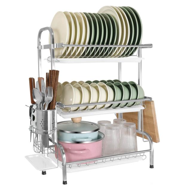 RiniroLis 水切りラック 3段式 食器 水切りかご ステンレス製 ディッシュラック 水切りかご キッチン収納ラック 大容量 包丁スタンド ま