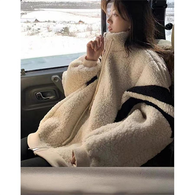フリースジャケット レディース ボアジャケット ブルゾン トップス バイカラー 羽織り 韓国風 カジュアル 保温 ゆったり ファッション 送料無料